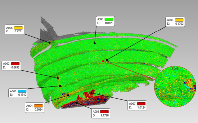 变形分析(地形和护土墙监测,使用三维色彩映射偏差分析或带有必要的色彩图谱的横截面进行快速、简易的识别)