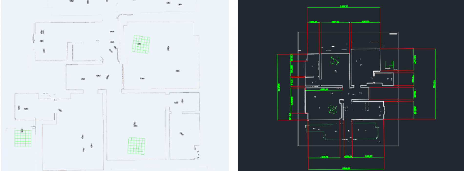 背景,2019年6月30日,云尚智造的员工伴着浠沥沥的小雨来到了一栋古典别墅,客户要求测量出别墅整体户型CAD传统测量不准确,且时间长,客户找到我们希望用三维扫描技术快速准确的测量出来。从车库到阁楼一共6层,面积约为460平方米,一个人扫描了3个小时,采集完成了整栋别墅的数据。在根据扫描数据进行CAD绘画最后交付给客户,客户对准确度以及时间周期上都非常满意。
